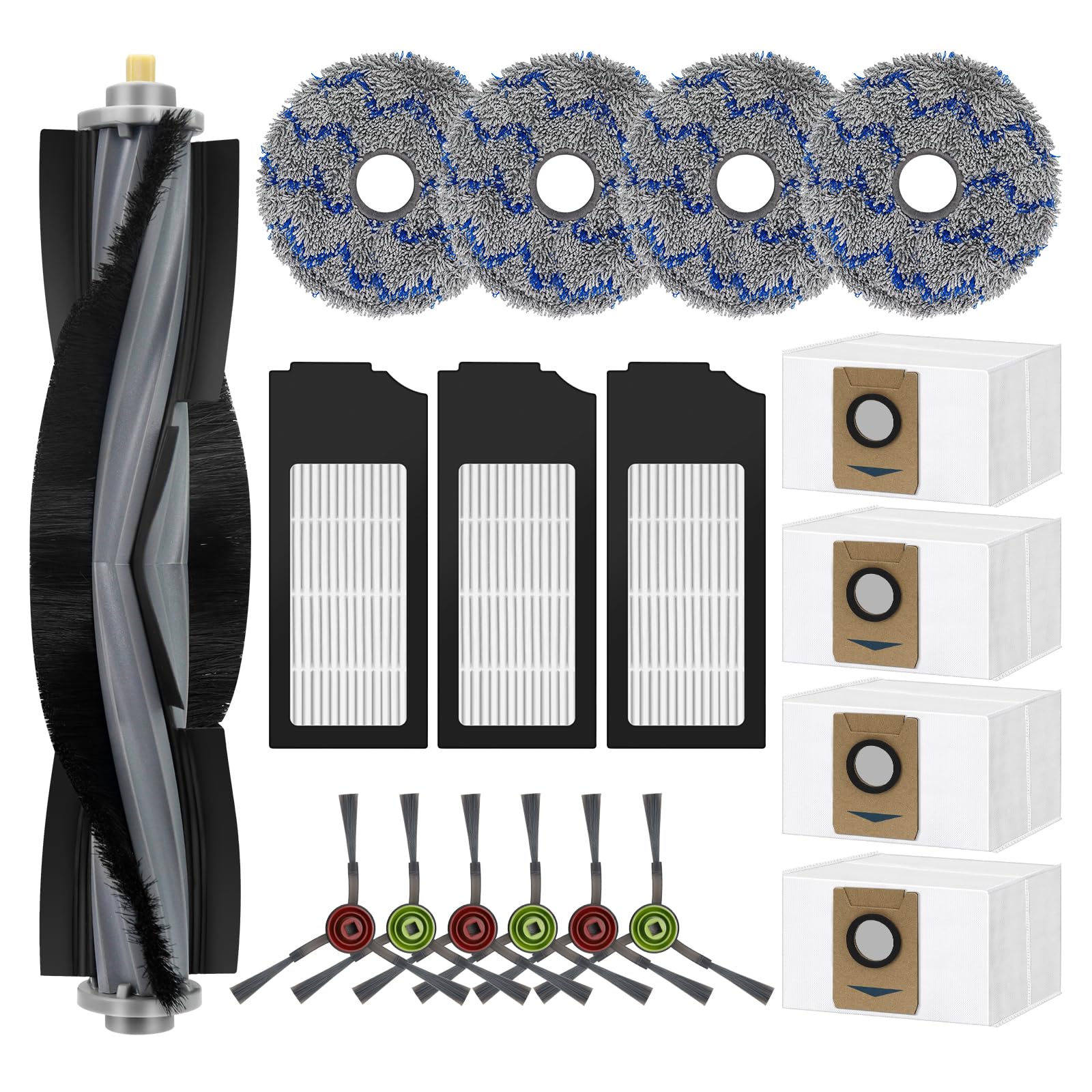 18 PCS Replacement Accessories Kit For Ecovacs Deebot X1 TURBO/OMNI Robot Vacuum Cleaner Parts, 1 Main Brush, 6 Side Brush, 3 Hepa Filter, 4 Mop Cloth, 4 Dust Bag