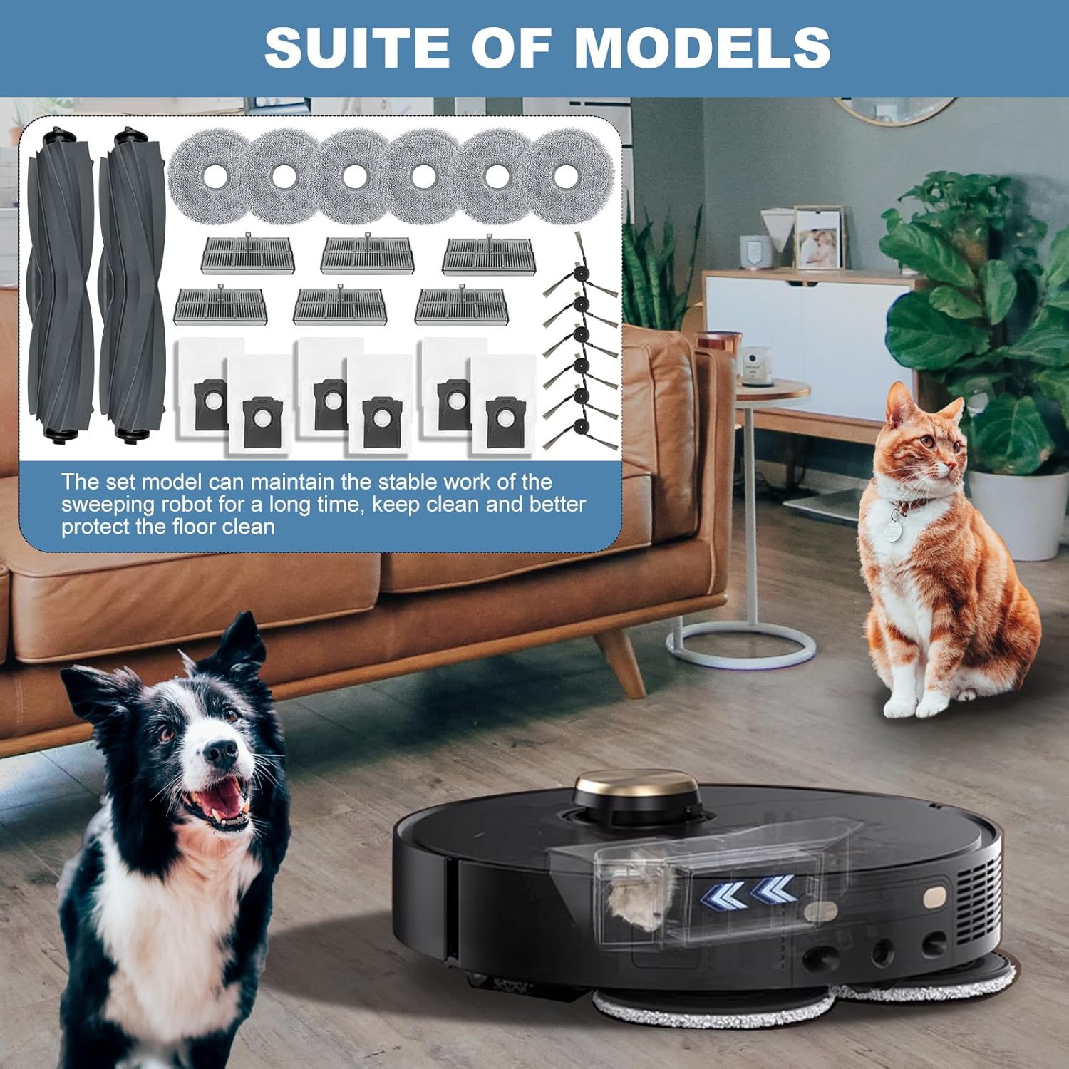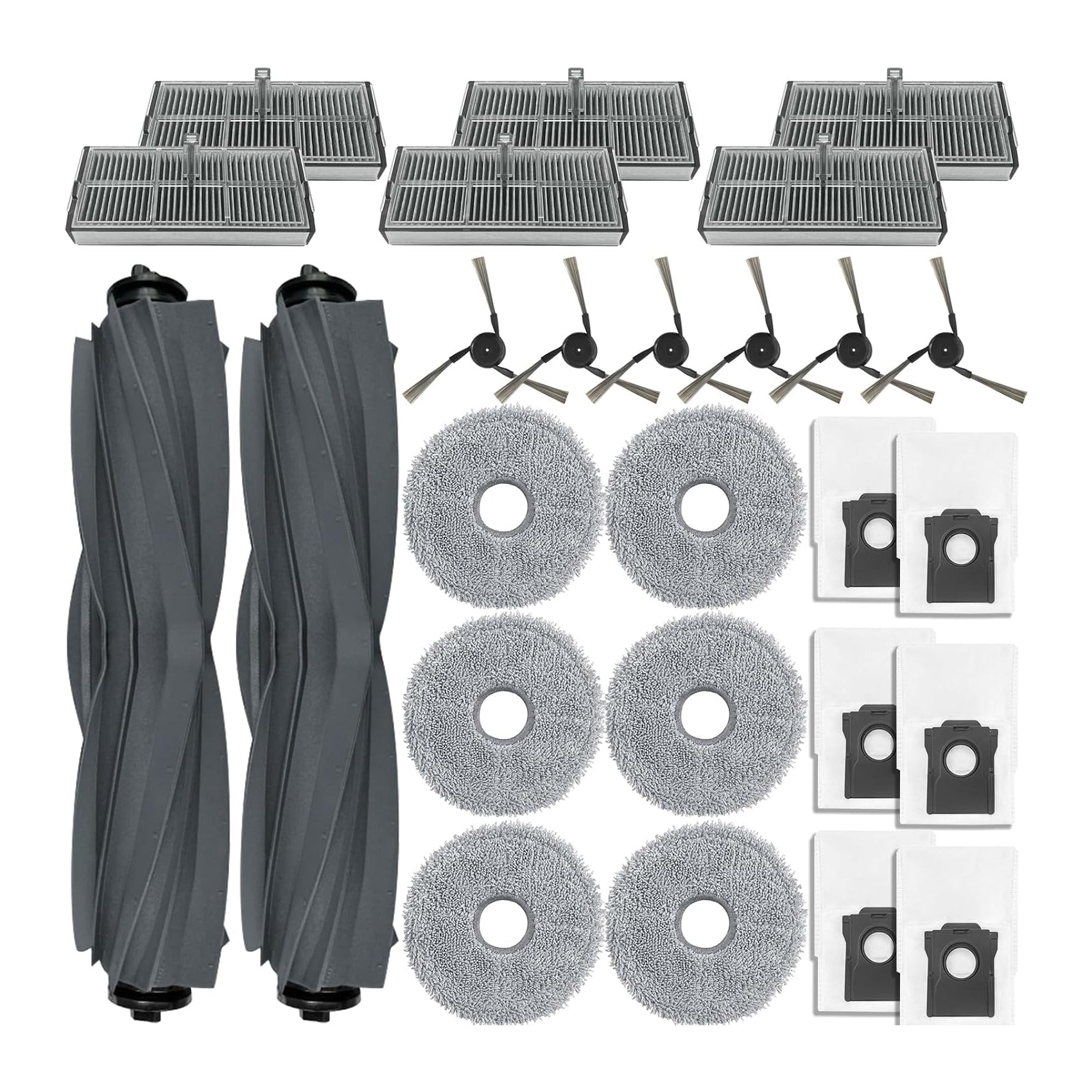 - [Set includes]: 2 Rubber Main Brush+ 6 Filters+ 6 Dust Bags+6 Mop Pads+6 Side Brushes