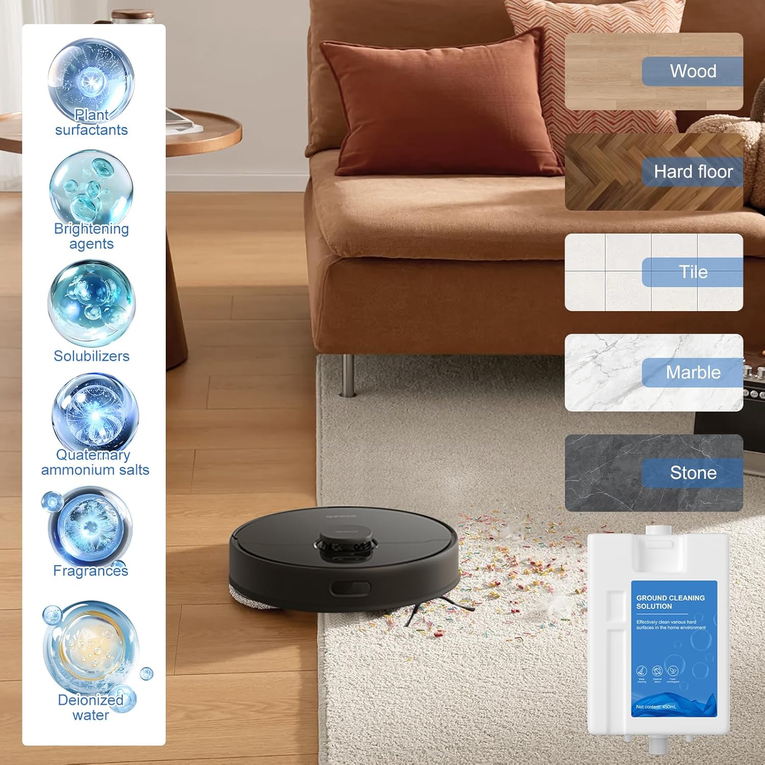 • 【L20 Ultra】 The floor cleaning solution designed specifically for L20 Ultra ensures effective mopping, leaving your floor radiant.