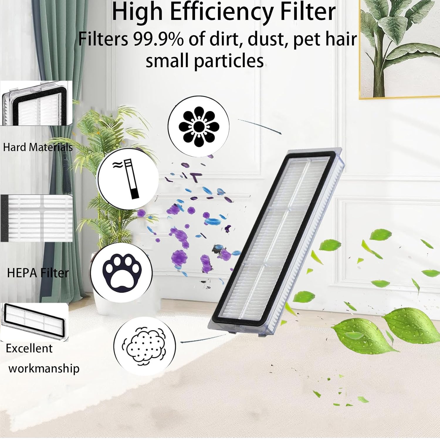 • Useful,Accessories:Mop Pad with Stand Easy to use and install, microfiber Mop Cloth is better at cleaning floor stains and residues.The HEPA filter is made of high quality material that effectively filters out dust, particles and pet hair for added cleaning
