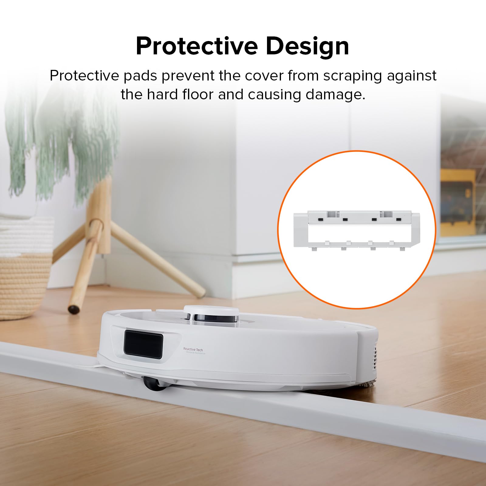 • This robot vacuum main brush cover features a rubber seal connecting tightly to hard floors, amplifying the effect of the vacuum cleaner. The protective pads prevent the cover from scraping against the hard floor and causing damage.