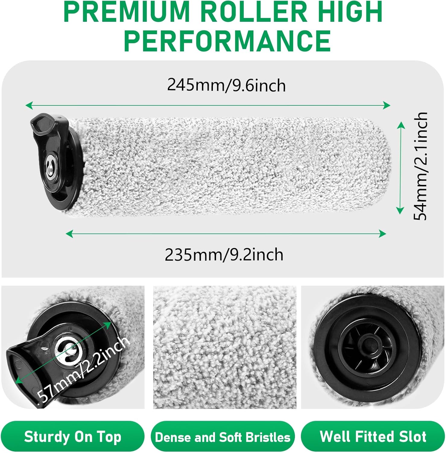 • 【Well-Made】: The roller is made of high-density facecloth material, well-made, the top of the roller is sturdy, the bottom groove is precisely matched with your vacuum cleaner, the dense and soft bristles fit closely with the floor, flat and smooth will not damage your floor, effectively clean the dust and stubborn stains on the wooden floor or other hard floors, to create a comfortable, warm and clean home environment for you.