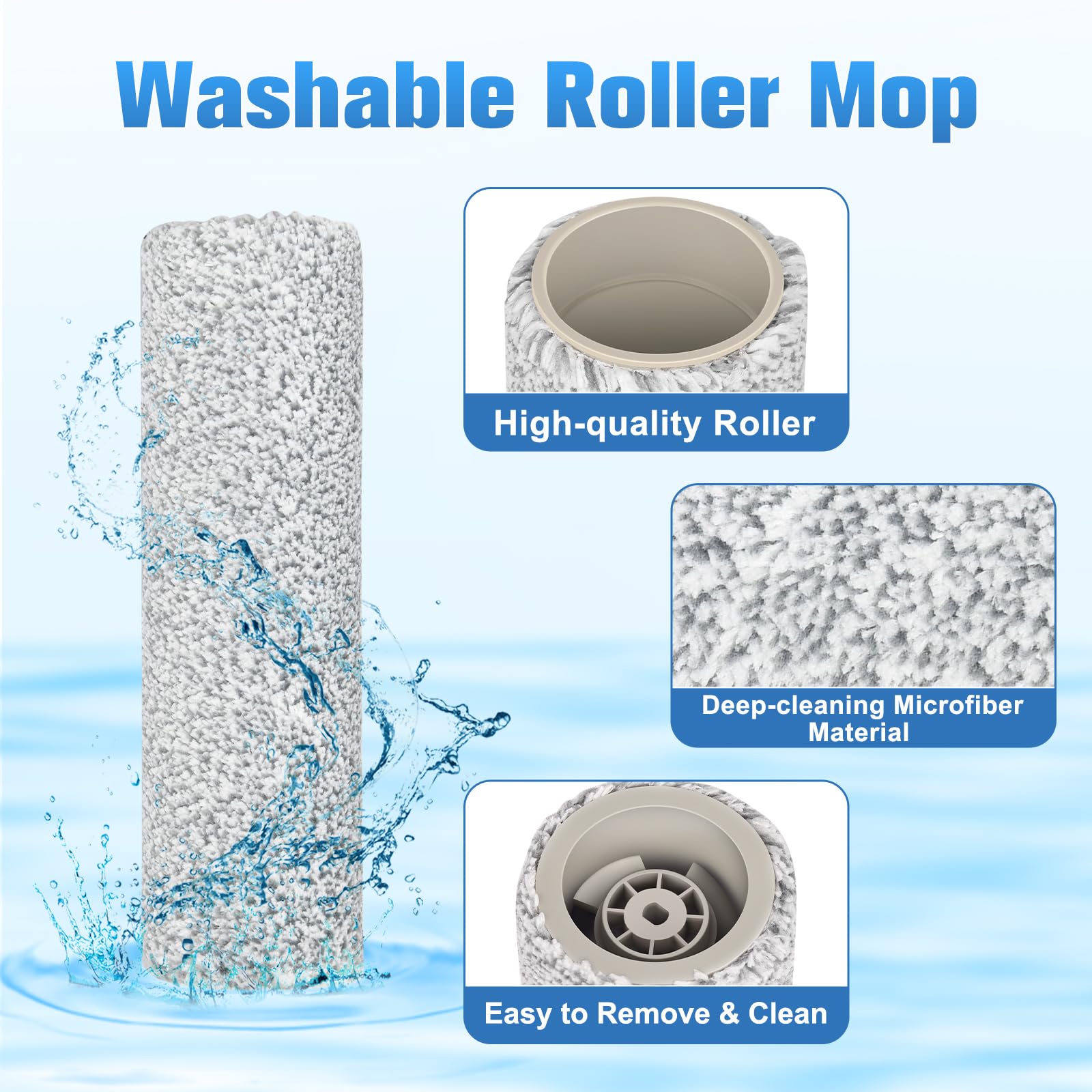 - Reusable & Washable Material: The clothes of 2 roller mops are made from high-quality microfiber, designed to be both washable and reusable. Their dense fiber structure effectively lifts stubborn stains, providing deep scrubbing action for a thorough clean. Perfectly suited for daily cleaning routines, they work seamlessly with vacuuming and mopping cycles to keep your floors spotless and fresh