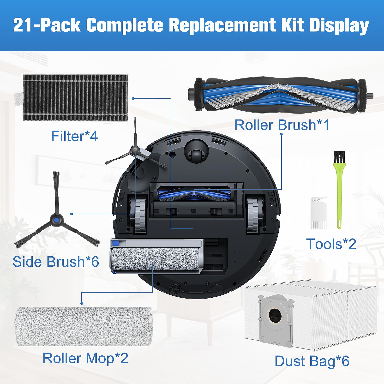 X8 OMNI Accessories Kit for ECOVACS DEEBOT X8 PRO OMNI Compatible with Yeedi S14 Plus Vacuum Cleaner, 21Pcs Replacement Parts, Main Brush, Roller Mop, Filters, Dust Bags, Side Brush, Tools